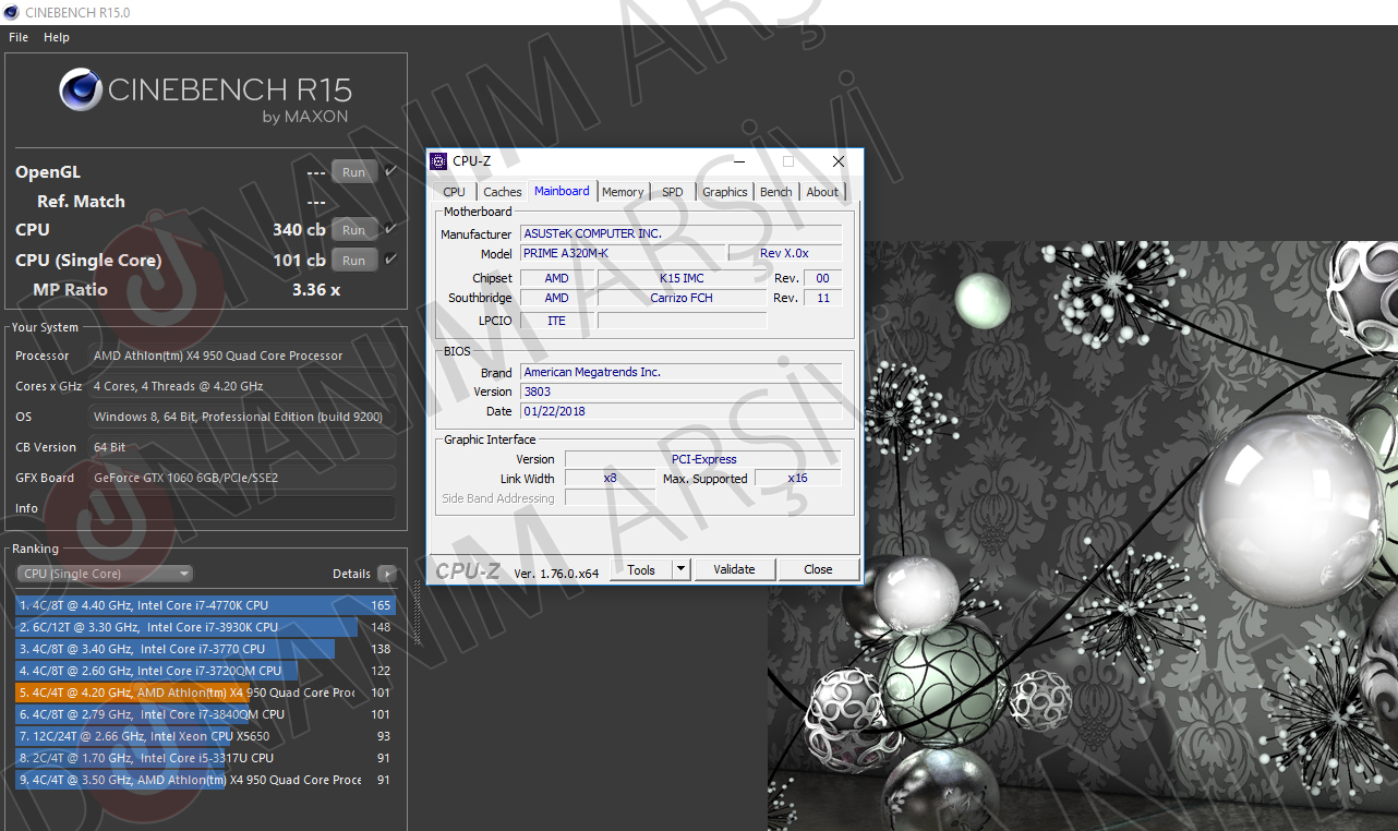 Bilindiği üzere A320 çipset taşıyan “bazı” anakartların BIOS bölümünde hız aşırtma kısmı aktif olarak gözükse de buradan OC yapsakta windows ortamında performansa yansıyan herhangi bir artış yaşanmıyor. Son yapmış olduğumuz sistem toplama rehberinde bunun işe yaramayacağının bilincinde olarak Cinebench R15 üzerinde “HIZ AŞIRTMA AÇIK” şekilde test yapmayı denedik. Lakin gerek puanlamada, gerekse de GHz değerlerinde yaşanan artıştan dolayı ASUS PRIME A320M-K anakartın AMD Athlon X4 950‘nin üzerinde gerçekten de hız aşırtma işlemi uyguladığını gözlemledik.