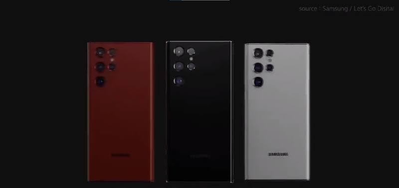 Galaxy S22 Ultra, düzleştirilmiş ön, arka, üst ve alt kısımlar ile kavisli kenarlar ile Galaxy Note 20 Ultra’ya benzer bir tasarıma sahiptir. Bordo rengi, Note 20’nin Mystic Bronze rengine ile oldukça benzeşiyor. Bu telefon gibi, S22 Ultra da daha yumuşak kavisli bir ekran tasarımına sahip. Arkada, geçen yıl çıkan S21 Ultra’ya benzer bir düzenlemede yeni kamera dizisi var, ancak çevresinde büyük yükseltilmiş bir çıkıntı bulunmuyor.