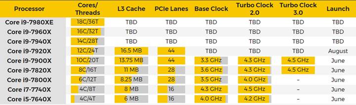 LGA 2066 soketine sahip Extreme serisi yeni işlemciler, Skylake X ve Kabylake X mimariye sahip olacak. Geçmiş sızıntılarda en güçlü işlemcinin 12 çekirdeğe sahip olacağı söyleniyordu. Ancak yeni yayınlanan bir sızıntıya göre Intel 16 çekirdek ve 36 izleğe sahip bir model daha geliştiriyor. Core i9-7980XE adlı işlemcinin yanı sıra 16 çekirdekli i9-7960X ve 14 çekirdekli i9-7940X adlı iki gelişmiş işlemci de yeni sızıntıda yerini almış durumda.