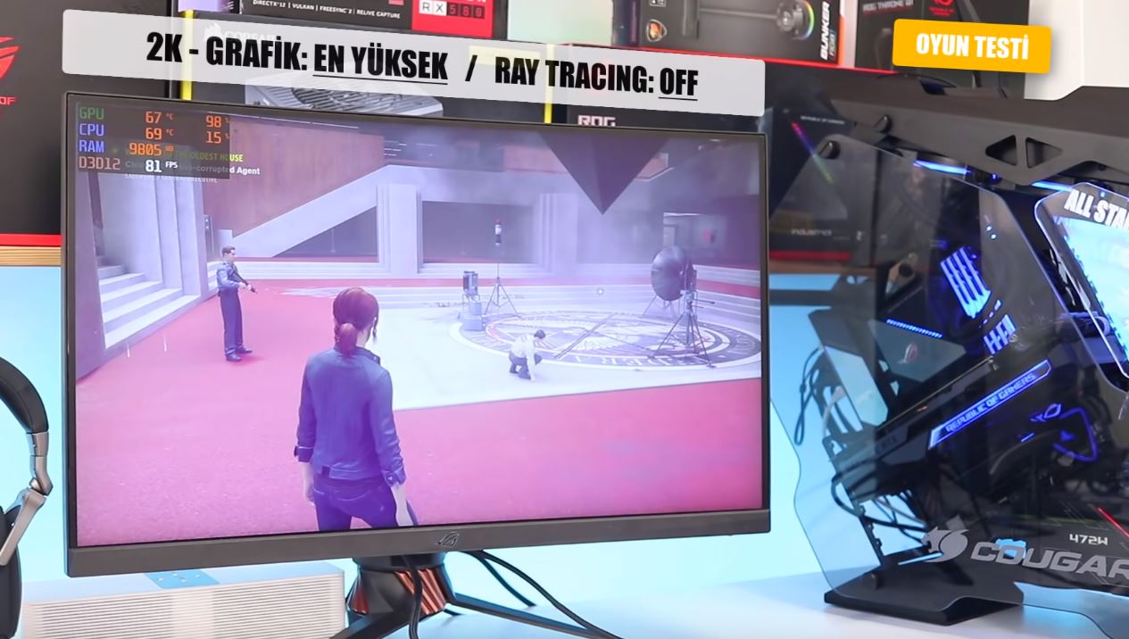 İkinci oyun testimizi ise yeni ve güçlü oyunlardan biri olan Control ile yapıyoruz. 2K çözünürlük ve Ray Tracing en yüksek ayarlarda yaptığımız testlerde FPS değerinin 50 gibi nispeten düşük kaldığını görüyoruz. Ray Tracing ayarını kapattığımız zaman ise FPS değeri 80 gibi değerlere çıkıyor. Control oyununda Ray Tracing ayarını kapatmak bize gerçekten yüksek bir FPS kazancı sağlayabiliyor.