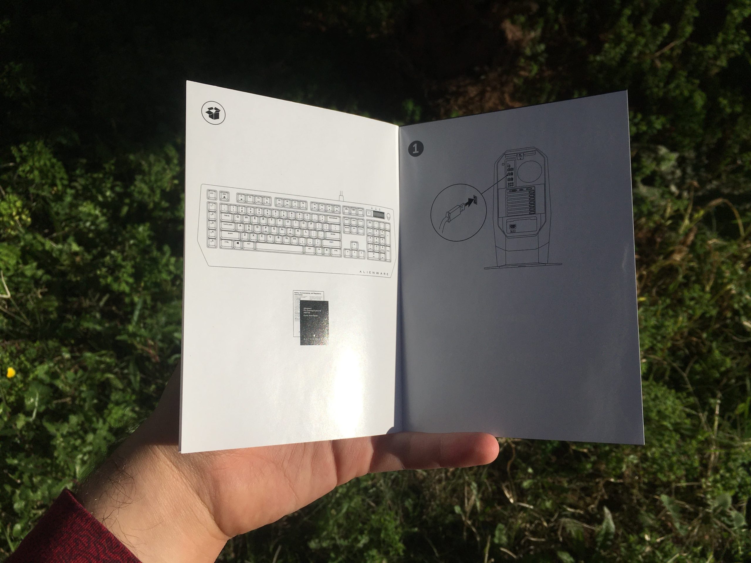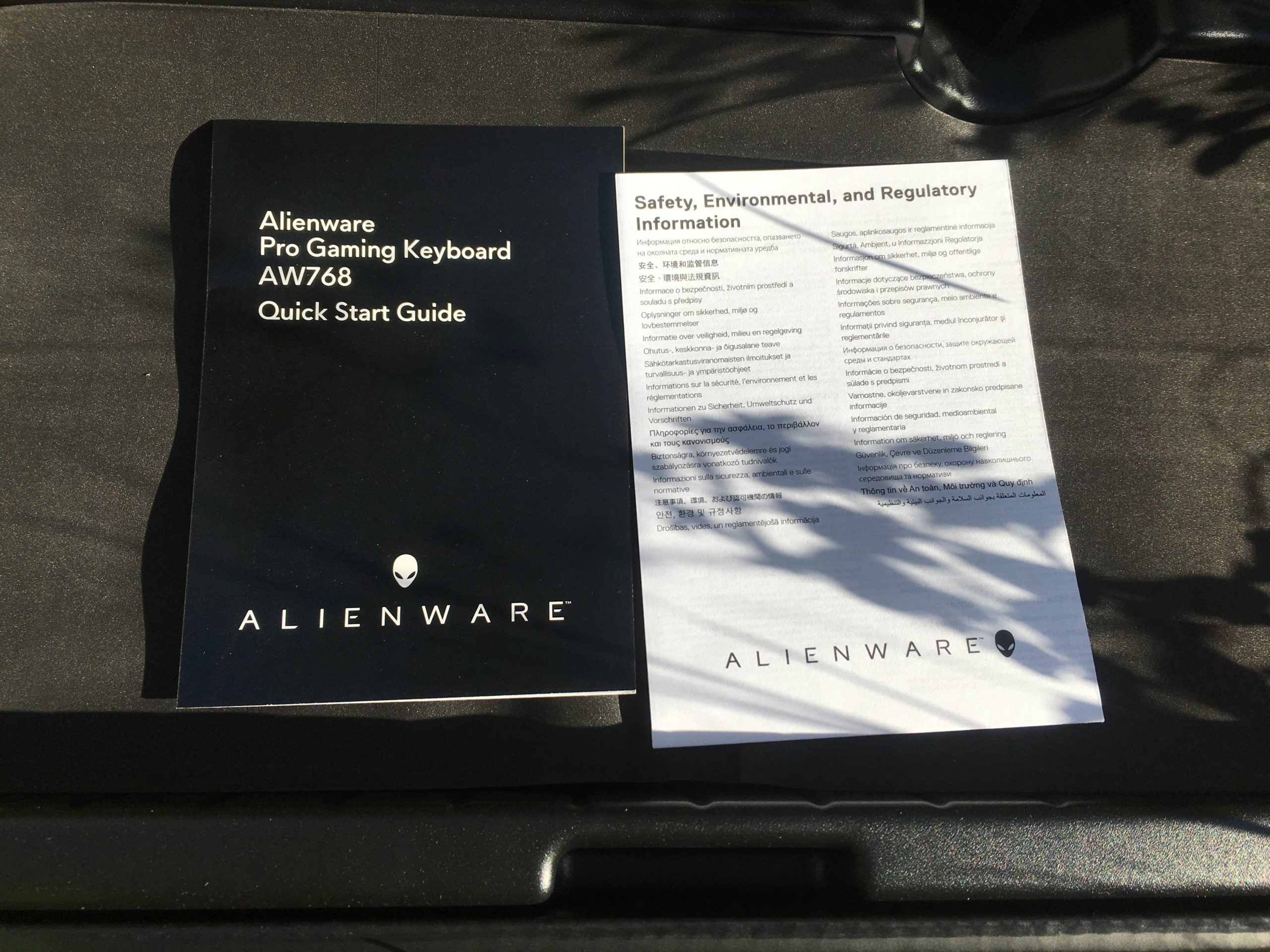 Klavyeyi kutudan çıkardığımız zaman karşımıza Alienware AW768’in kullanım kılavuzu ve garanti belgesi çıkıyor. Kullanım kılavuzunda klavyenin nasıl USB portuna takılacağı ve yazılımının nereden yükleneceği yazıyor. Aşırı sade ve ayrıntıya yer vermeyen bu kullanım kılavuzu bundan ibaret.
