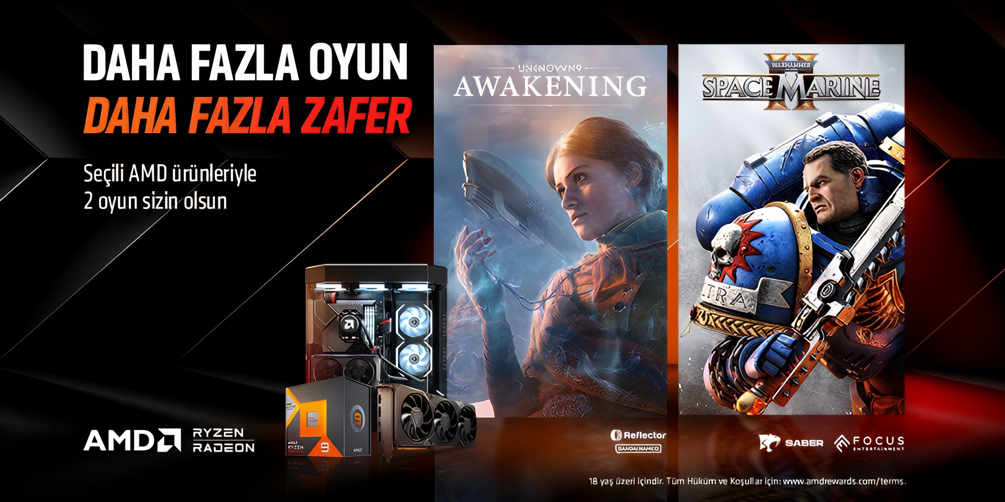 Özellikle AMD markası yıllardır benzer bir kampanya yürütüyor. Seçili donanım satın alımlarında oyunlar hediye ederek kullanıcısını memnun etmeyi başarıyorlar. Bu kampanyalara ise bir yenisi daha eklendi. Warhammer 40,000: Space Marine 2 ve Unknown 9: Awakening isimli bu oyunlar yeni donanım / laptop satın alımlarınızda size hediye olarak sunuluyor. İşte bu yeni AMD Game Bundle hediye kampanyasının önemli detayları!