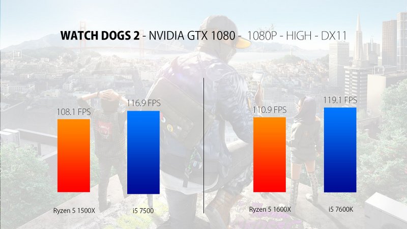 Nvıdıa GTX 1080 ekran kartıyla yaptığımız Watch Dogs 2 testine baktığımızda ise durumun değiştiğini görüyoruz işlemimiz 1600X rakibi olan i5-7600K dan 9 FPS daha düşük skora imza atıyor bu değerlere işlemciler arasında bulunan frekans farkının etki ettiğini söyleyebiliriz.