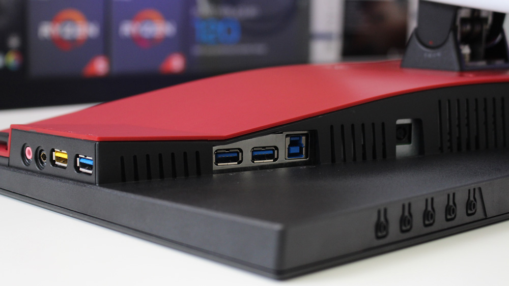 Monitörün sağ kısmına bakacak olursak bize 2x USB bağlantısı sunuyor. Bu USB yuvalarından sarı olan hızlı şarj özelliği sunuyor. Gene sol kısımda 1x kulaklık ve 1x mikrofon yuvası bulunuyor. Sağ kısımın arkasında ise 2x USB 3.0 yuvası bulunuyor. Bu yuvaları aktifleştirmek için Type-B yuvası mevcut. Monitörün enerji yuvası da bu kısımda bulunuyor.