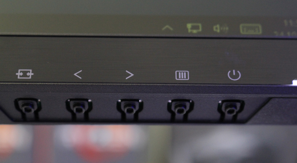 Monitörün çeşitli özelliklerini yönetebilmeniz için sağ alt kısımda bulunan tuşları kullanabilirsiniz. Karşıdan bakınca dokunmatik gibi gözüksede alt kısımda bulunan fiziksel tuşlar sayesinde menüye girip ayarlarınızı yapabilirsiniz.