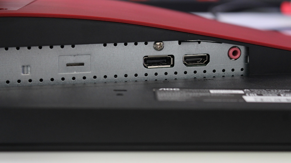 Monitörün sol kısmının arkasında ise 2 adet görüntü bağdaştırıcı yuvamız bulunuyor. 1x Display Port ve 1x HDMI(1.4) yuvası var. HDMI yuvası sayesinde monitörün kendi hoparlörünü kullanabilirsiniz. Güçlü olmasa da iş görebilecek düzeyde bir ses seviyesi (2W) sunuyor. Bu yuvaların yanında ise monitörde bulunan kulaklık ve mikrofon yuvalarını aktifleştirmek için, kasa ile olan bağlantıyı JAK girişinden sağlayabilirsiniz.