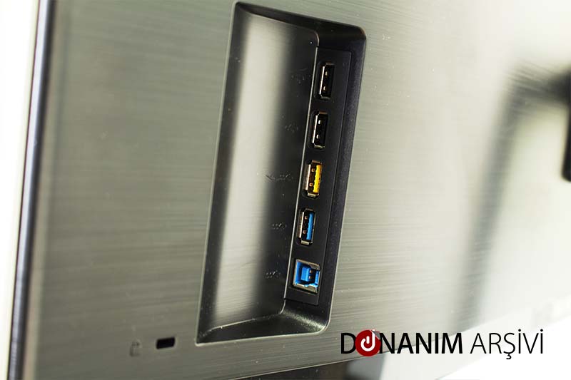 U3477PQU’in giriş ve çıkış birimlerine baktığımız zaman ilk değinmek istediğim USB giriş çıkış birimleri, monitör Giriş birimi olarak bulunan 1 Adet USB 3.0 Type B bulunmakta bu birim, çıkış birimi olan 2 Adet USB 3.0 ve 2 Adet USB 2.0 Type A portlarına veri iletişimi sağlıyor. Burdaki USB 3.0lardan Sarı olan port monitör kapalıyken aygıt şarj etmenize olanak tanıyor.