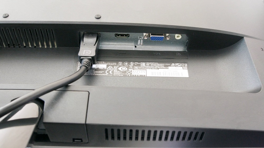 Alt kısımda ise oldukça geniş bir yapı bulunduğunu belirtmiştik. Buranın sağ kısımda güç yuvasını konumlandıran Asus, sol kısımda görüntü çıkışlarını konumlandırmış. Monitörde 1x D-Sub, 1x HDMI, 1x DisplayPort çıkışı bulunuyor. Yani görüntü çıkışı konusunda zengin olduğunu söyleyebiliriz.