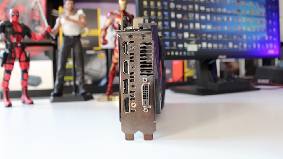 Ekran kartımızın görüntü çıkışlarına baktığımızda dikkatimizi direk DVI-I portu çekiyor. Nvidia, Founders Edition tasarımında soğutmayı geliştirmek adına bu portu kaldırmıştı ama Asus bu portu es geçmemiş. Buna ek olarak 2 adet HDMI 2.0B çıkışı görüyoruz ve 2 adet Display Port 1.4 portlarını görüyoruz. Yani 4K çözünürlükte 60HZ çıkış ve 12 bit renk derinliği alabiliyorsunuz.