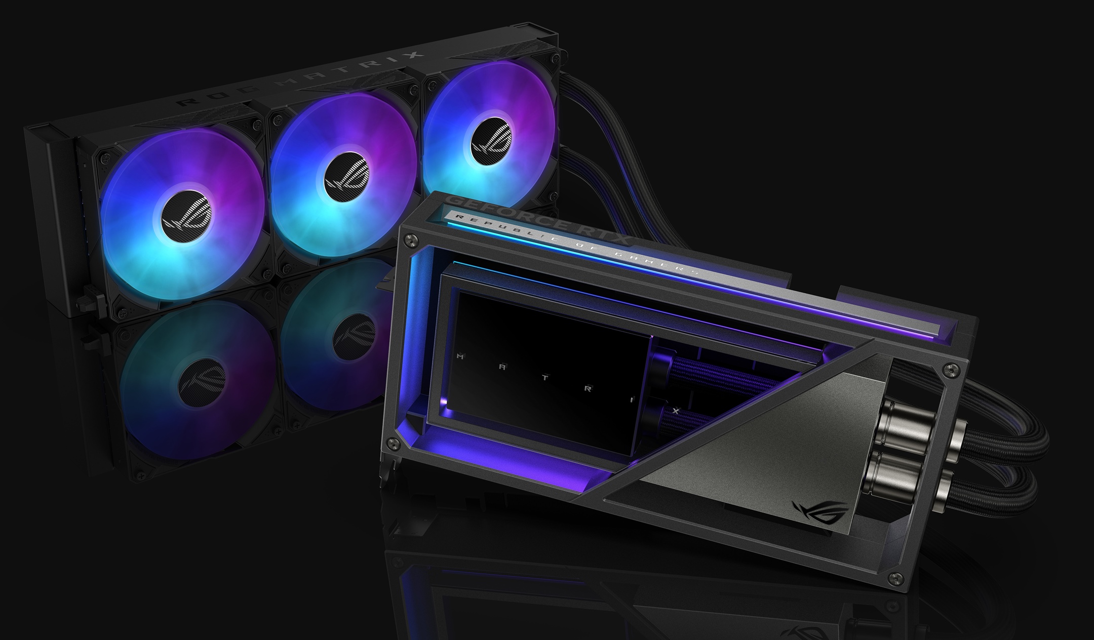 Sıvı metal harika bir yöntem olsa da ROG Matrix GeForce RTX 4090’ın sıcaklık ve gürültü seviyelerini düşük tutmak için yararlandığı kapsamlı çözümün sadece bir parçasını oluşturuyor. Kartta özel tasarlanmış, son derece kalın bir 360 mm radyatör ve onu destekleyen üç adet ROG MF-12S ARGB fan bulunuyor.