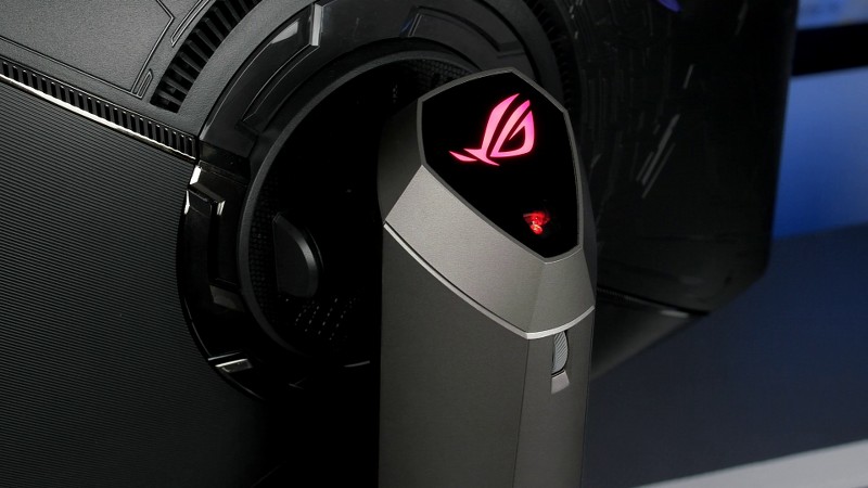 Cihazın tasarımındaki en dikkat çekici kısım ise arkasındaki ROG gözü. Bu kısımda 16.8 milyon RGB renk paletinden istediğinizi kullanmanız mümkün, üstelik çeşitli modlara sahip ve Aura-Sync yazılımı ile uyumlu çalışabiliyor. Bu kısmın haricinde kalan diğer kısımlarda robotik bir tasarım dili tercih edilerek oyuncu teması vurgulanmaya çalışılmış.