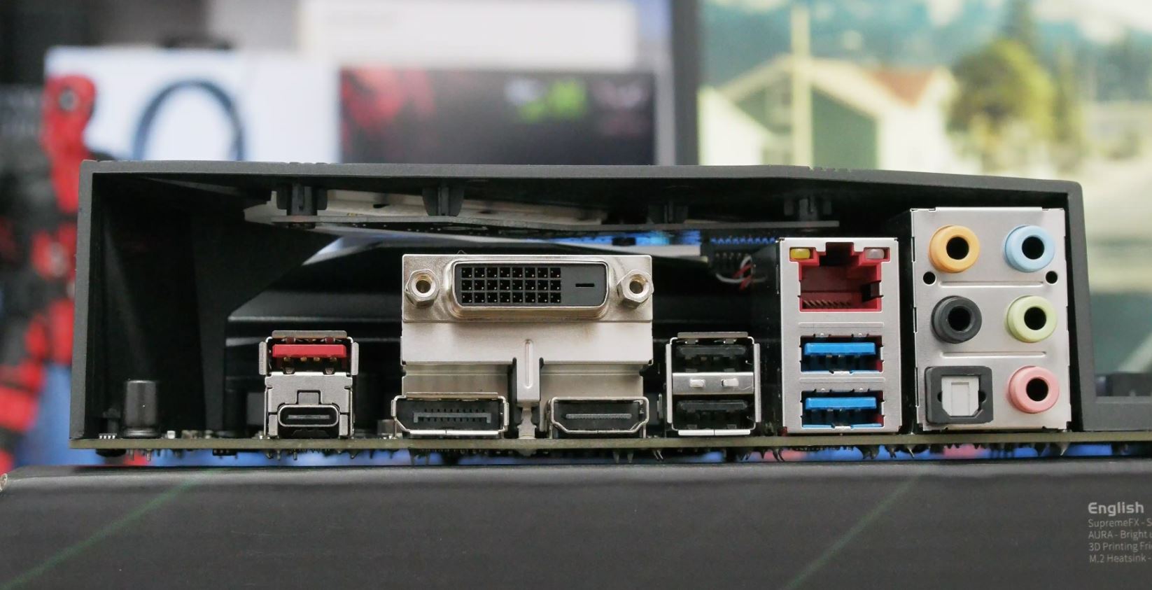 Anakartımızda 2 adet Mosfed soğutucusu bulunuyor ve Mosfed soğutucuların baktığımızda kaliteli bir metal olduğunu rahatlıkla fark ediyorsunuz. Renk kısmı olsun metalin verdiği his olsun oldukça başarılı. Arka çıkışların üzerindeki koruma sertleştirilmiş plastik ve RGB aydınlatma barındırıyor. Cihazın tasarım oldukça iyi ve buna birde RGB aydınlatma dahil olmuş.