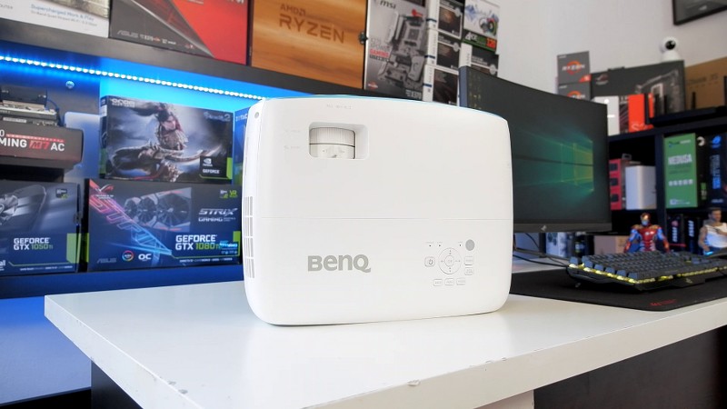 Cihazın üst kısmına baktığımızda gri renkte bir BENQ yazısı görüyoruz. Hemen yan tarafında cihazın kontrol tuşları bulunuyor. Üst tarafta ise odak-boyut ayarı yapabildiğiniz bölüm bulunmakta.
