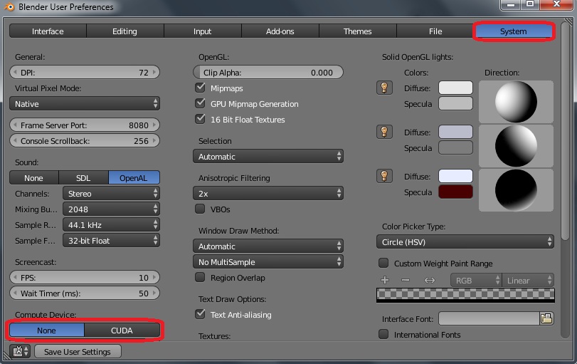 Burada ise None yazan kısımın hemen yanındaki Cuda ya tıklıyoruz ve ekran kartımızı aktif ediyoruz. Ve son olarak Save User Settings diyoruz ve yaptığımız ayarları kayıt ediyoruz. Bu pencereyi kapatarak buradaki işlemlerimizi bitirebiliriz.