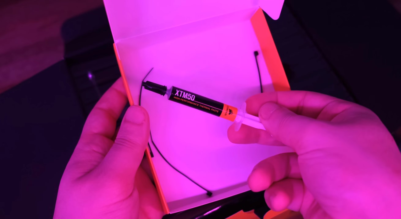 Soğutucunun kutu içerine baktığımızda montaj yapabilmenizi kolaylaştıracak Corsair yazılı bir tornavida çıkmakta. Bunun yanı sıra Intel ve AMD’nin çoğu masaüstü platformlarına destek sunması adına bazı aparatlar eklenmiş. Diğer bir güzel kısım ise içerisinden XTM50 model üst seviye bir termal macunun çıkması olmuş.