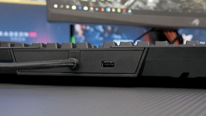 Klavyenin kablosunun oldukça kalın ve dayanıklı göründüğünü söyleyebilirim, bunun nedenlerinden biri ise klavyemizde ek olarak USB portu bulunması. Bilgisayarınızda 2 adet USB portu dolduruyor fakat elinizin hemen altında 1 adet daha USB portu daha olmuş oluyor. Bazı klavyelerde bulunan bu özelliği Corsair’ın devam ettirmesi bizce güzel olmuş. Buradaki eleştirimiz ise bu portun USB 3.0 standartını desteklememesi.