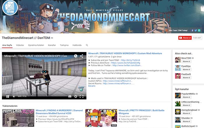 Bu hafta sizelere youtube üzerinde Minecraft oyunun en çok izlendiği kanalları derleyeceğiz.