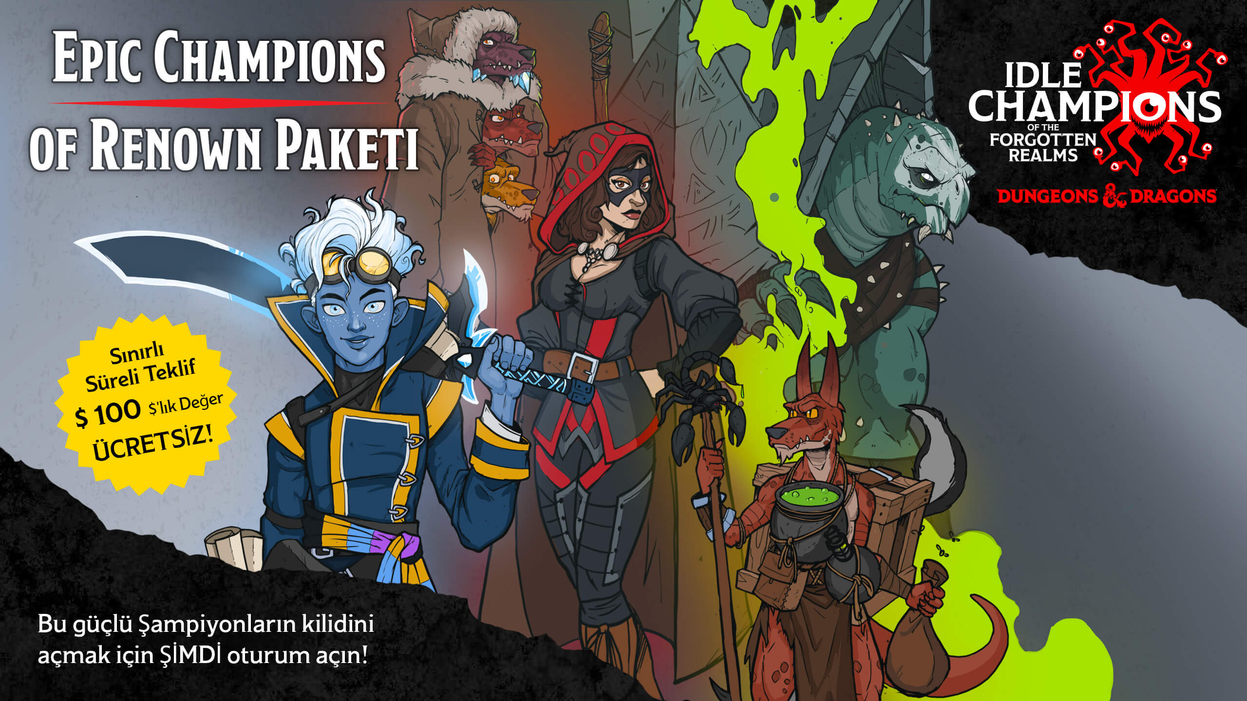 Bilindiği üzere her Perşembe günü en az 1 oyun hediye eden Epic Games, bu hafta farklı bir sürprize imza attı. Platform, bu hafta hediye oyun yerine Idle Champions of the Forgotten Realms oyununun “Epic Champions of Renown” DLC paketini ücretsiz olarak dağıtıyor!