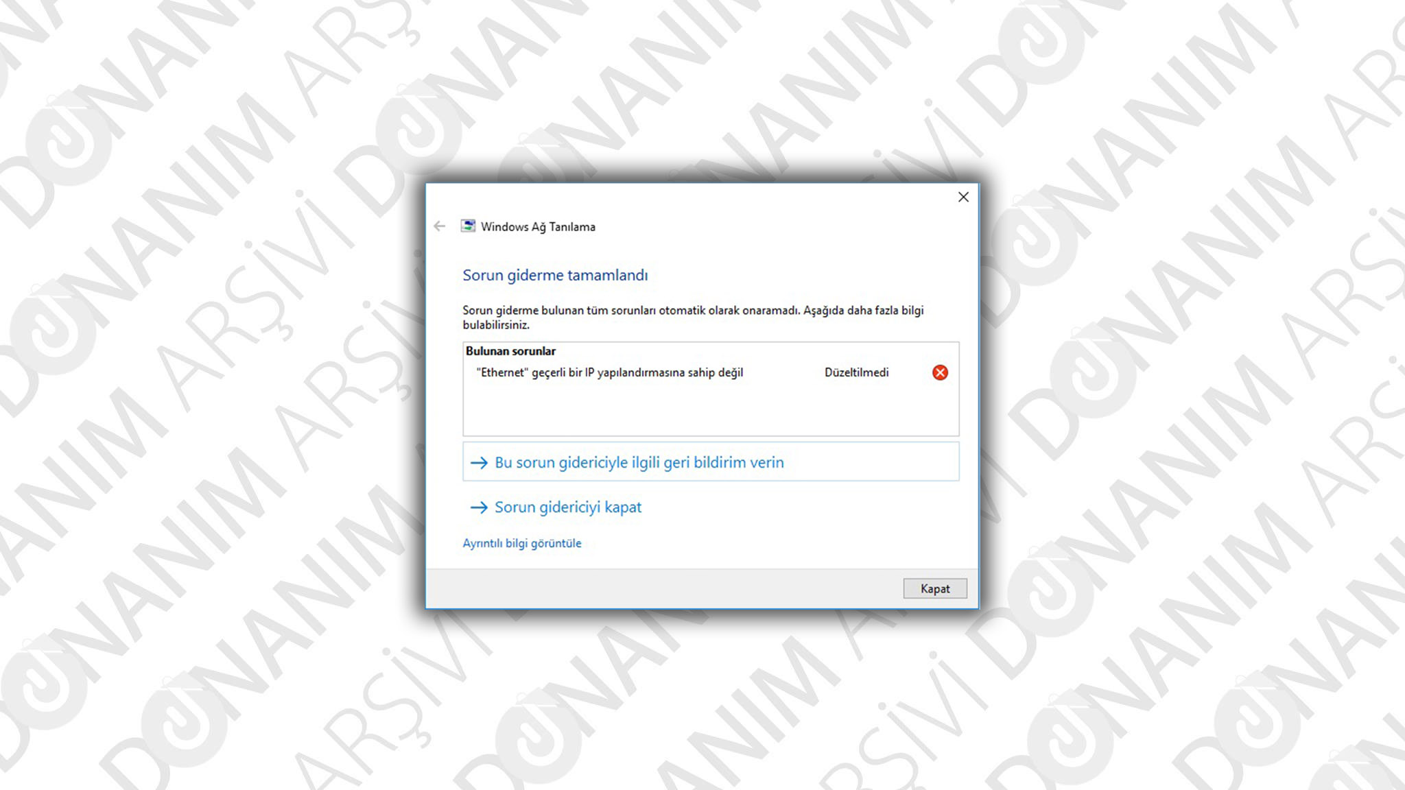 Ethernet geçerli bir ip yapılandırmasına sahip değil hata çözümleri