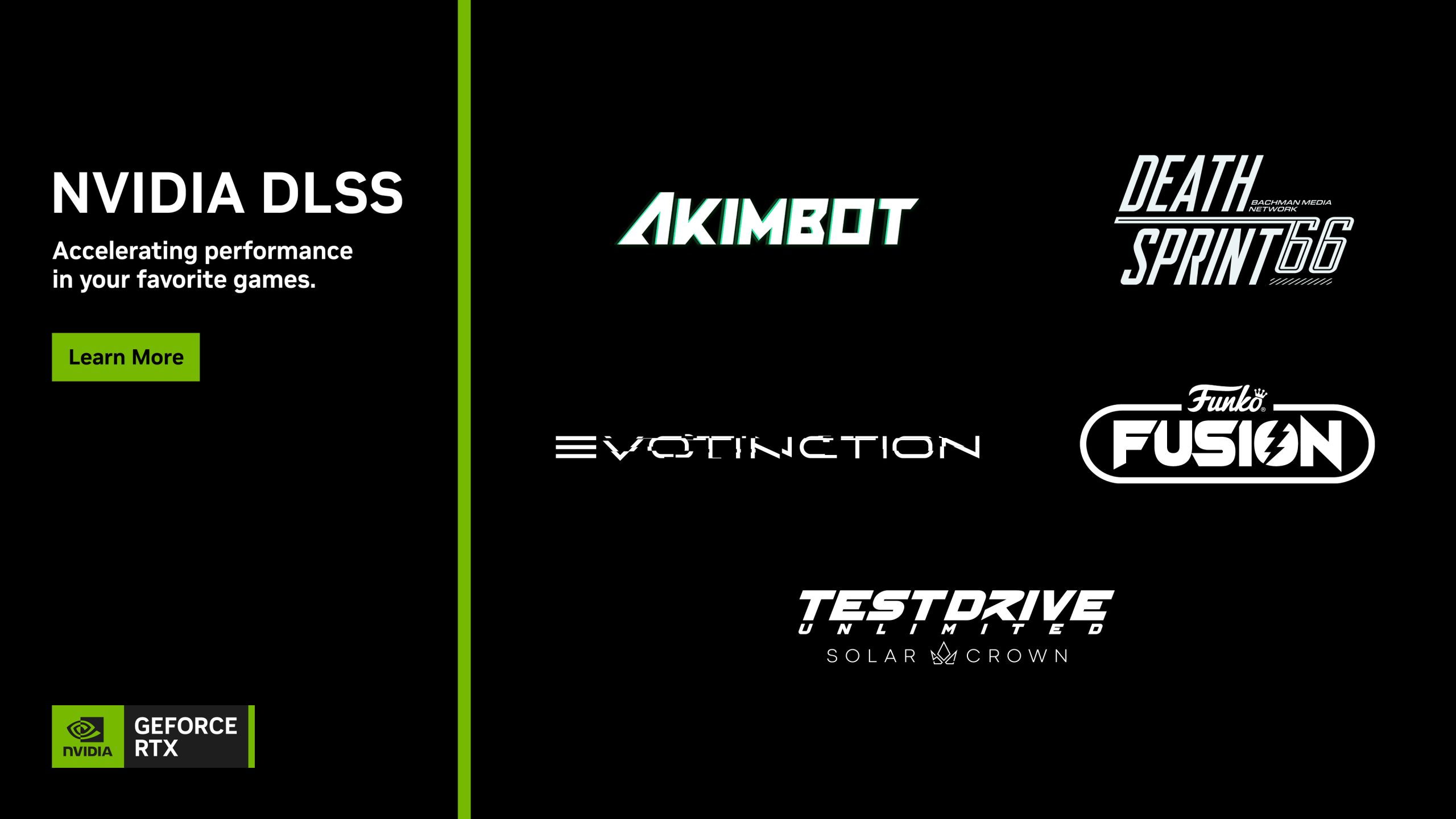 Bu hafta, EVOTINCTION, Funko Fusion, Test Drive Unlimited Solar Crown, ilk günden itibaren DLSS 3 desteğiyle piyasaya çıkıyor. Ayrıca, Akimbot şimdiden DLSS 3 teknolojisini destekliyor durumda ve DeathSprint 66, bu hafta DLSS Süper Çözünürlük desteğiyle ilk günden oyuncularla buluşuyor.
