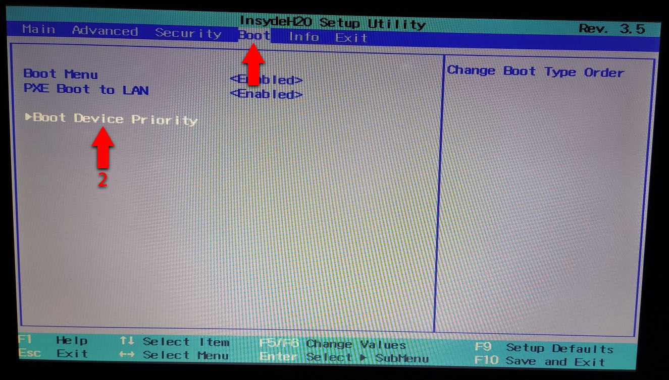 Windows 10 dosyalarını flaş belleğe yazdırma işlemi bittikten sonra artık kuruluma geçebiliriz. Bu kısım biraz karışık gelebilir, çünkü BIOS görünümleri cihazdan cihaza büyük farklılıklar göstermekte fakat genel anlamda aynıdır.