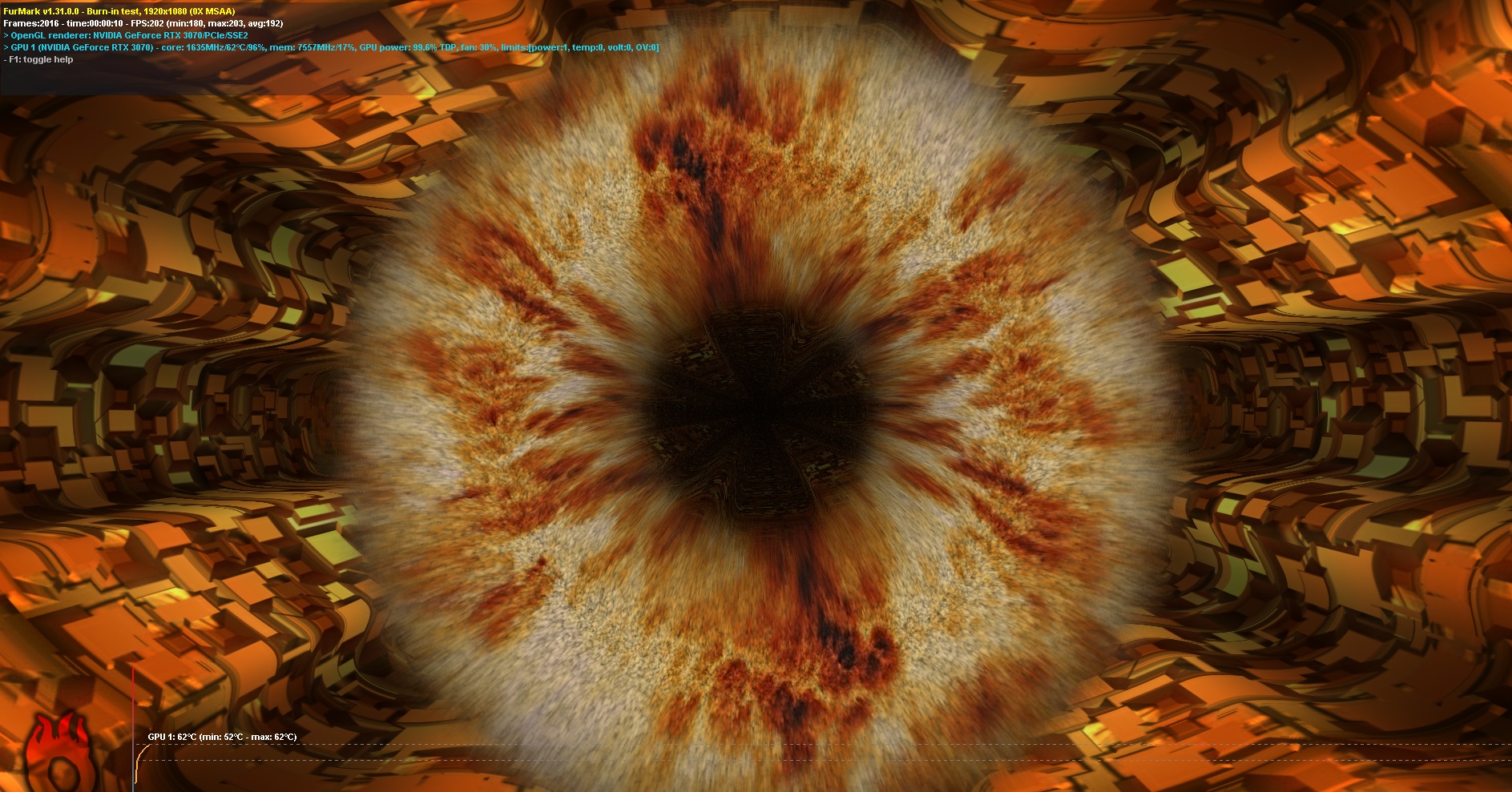 Buradaki verdiğimiz ayarlar önemli. Çünkü ekran kartı en yüksek yüke bu bahsettiğimiz ayarlarda girebiliyor. Başta yüksek anti aliasing ayarı daha fazla yük bindirebilir gibi düşünebilirsiniz fakat FurMark testinde bu durum maalesef böyle değil.