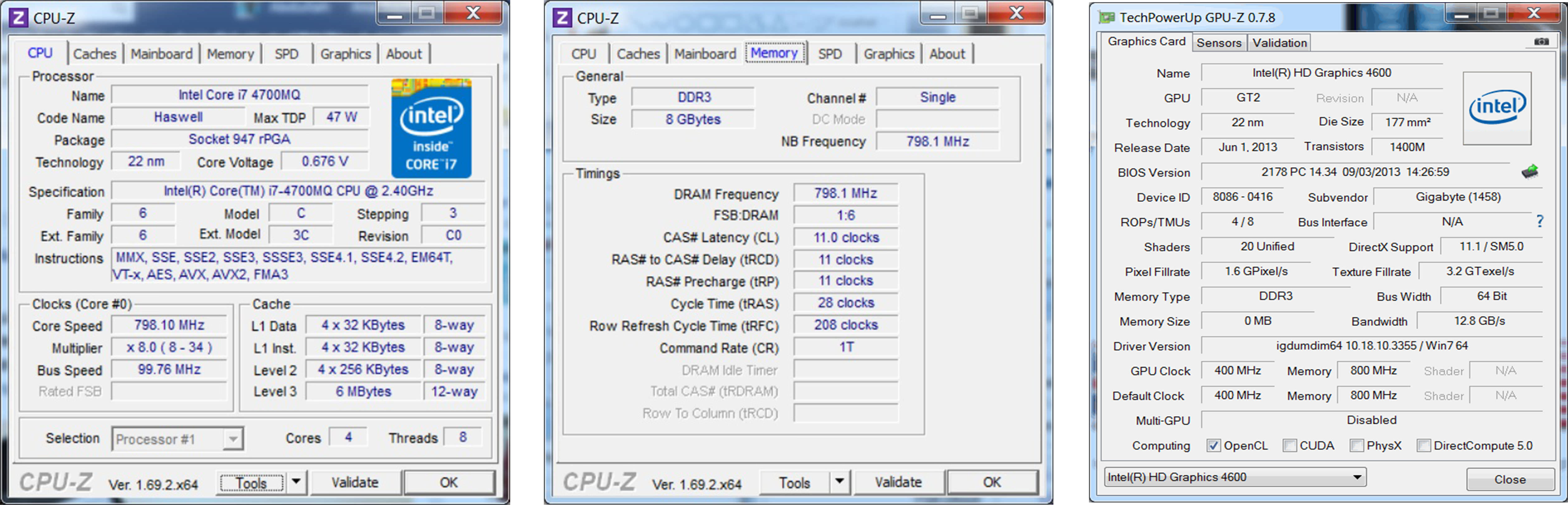 - INTEL Core I7 4700MQ (2,4Ghz – 3,4Ghz)