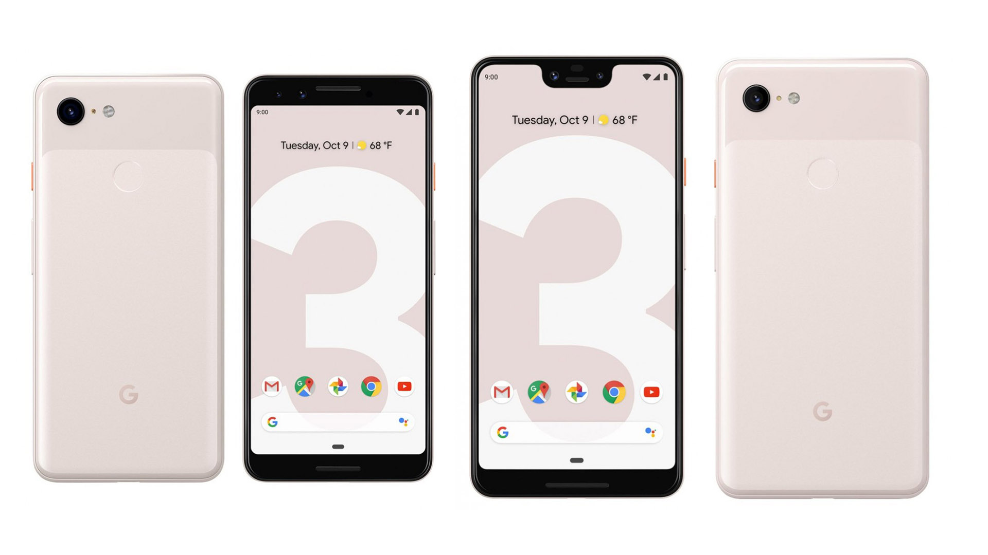 Ufak farklılıklar dışında arka tasarımıyla diğer Pixel serisi telefonlara oldukça benzeyen cihazlar, asıl olarak ön tasarımında farklılık yaratıyor. Serinin küçük telefonu Pixel 3 geniş ekran formatı ve çentiksiz tasarım ile gelirken, Pixel 3 XL ise ortalama sayılabilecek bir çentik ile geliyor.