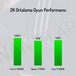 1080P çözünürlükte yaptığımız oyun testlerinin ortalamasına baktığımız zaman Core i7-10700K işlemcinin rakibi olan Ryzen 7 3700X modeline oranla %7 daha fazla performans verdiğini görüyoruz. 2K çözünürlükte ise bu fark biraz daha azalarak %5’e düşmekte.