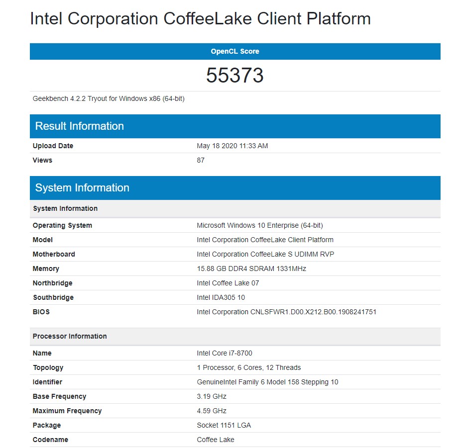 Geekbench platformunda i7-8700 ile testi görülen bu ekran kartının OpenCL testinde aldığı ortalama skor 55373 olmuş. Bu testte ekran kartı adına çok fazla bilgi maalesef bulunmuyor. Şimdilik bilinenler bu kartın; 3 GB belleği, 96 bit bellek veri yolu ve maksimum GPU frekansının 1500 MHz civarlarında kaldığı. Aslında bu kart henüz daha geliştirilme aşamasında olduğu için tahmin edebileceğiniz gibi bu testlerin kesin bir sonuç vermeyeceğini söylemek mümkün. Fakat bu testte bazı giriş seviyesi ekran kartlarının skorlarına baktığımızda RX 5500 XT gibi rakipleriyle aralarında 2 katı bir performans farkı olduğunu görüyoruz.