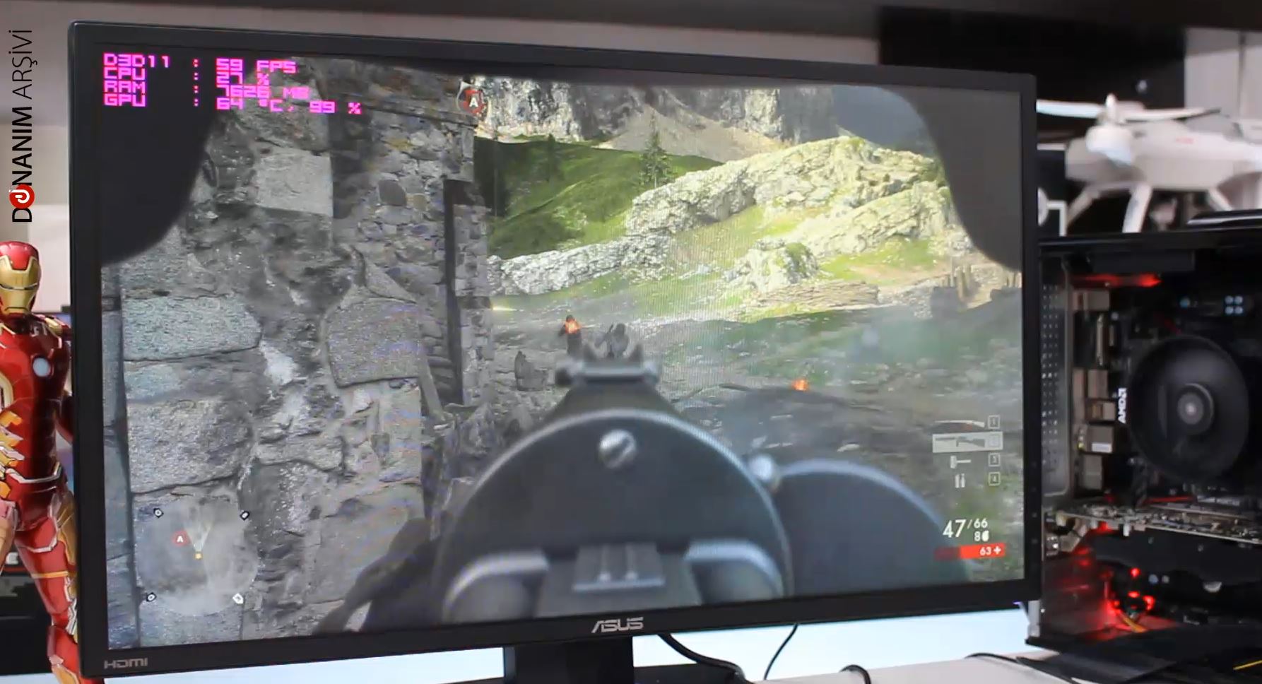 BF1 testimizde ise FullHD çözünürlükte tabi ki Ultra ayarlarda Minimum 51 FPS, maksimum 69 FPS ve ortalama 55 FPS aldık. GPU sıcaklığımız ise 63°C‘deydi.