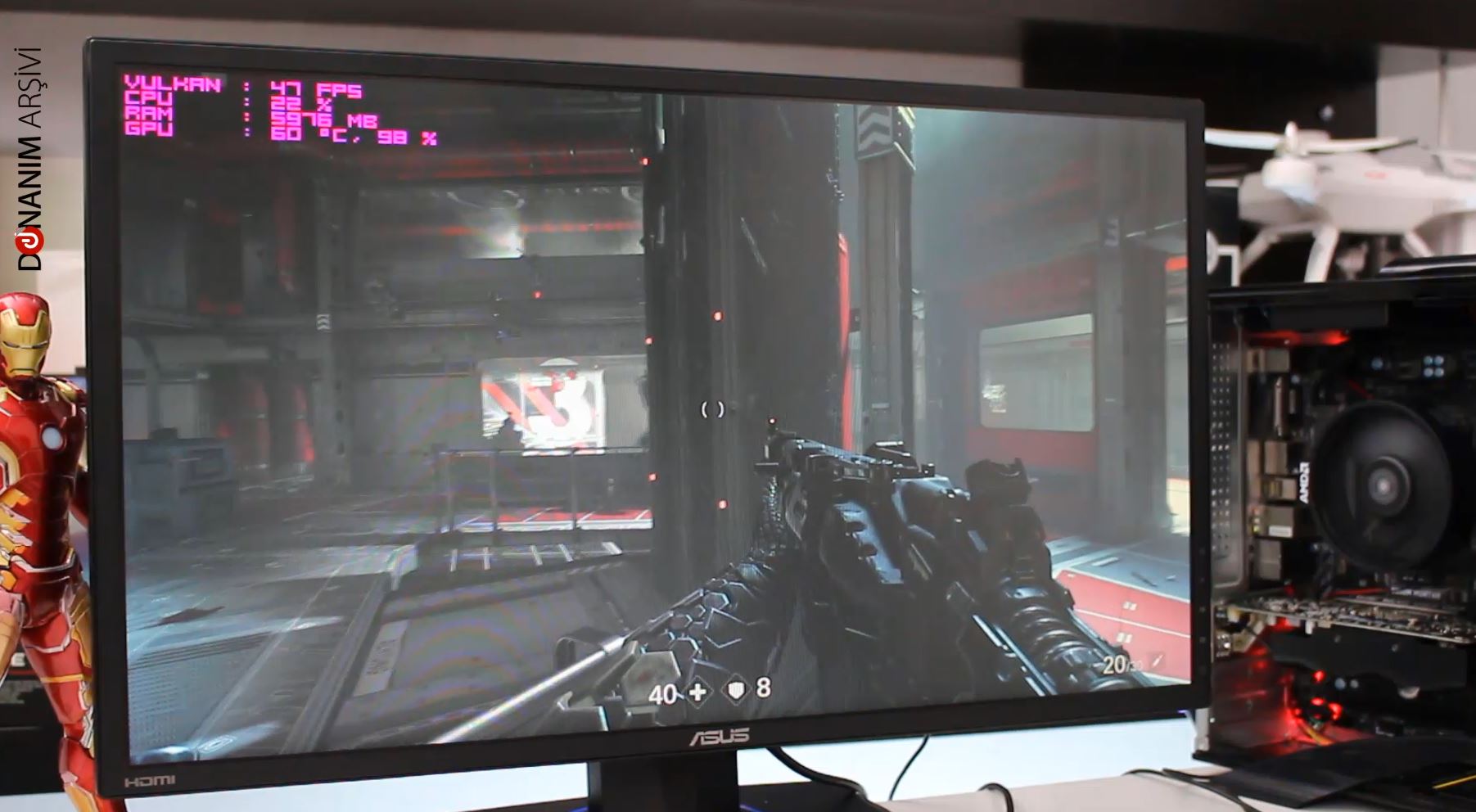 İlk oyun testimiz, daha yeni çıkmış olan Wolfenstein 2. FullHD çözünürlükte Ultranın 2 üst seviyesinde (Mein lebenl) testimizi yaptık. Minimum 36 FPS, maksimum 48 FPS ve ortalama 40 FPS aldık. Ultra çözünürlükte ise Minimum 41 FPS, maksimum 65 FPS ve ortalama 47 FPS aldık. GPU sıcaklığımız ise 63°C’deydi.
