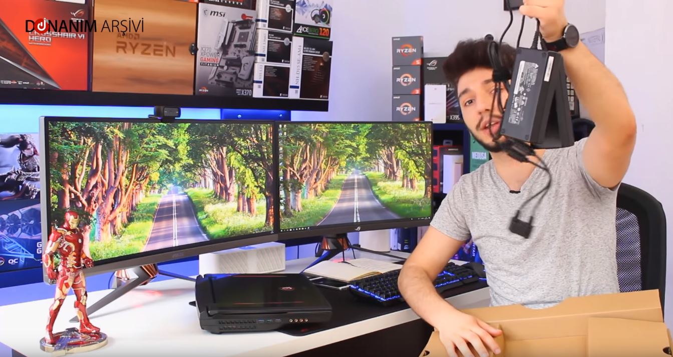 Cihazın adaptörü ise alışılmışın dışında olmuş. Kutusunda 2 adet 230W gücünde adaptörle geliyor ve özel bir aparat ile bu 2 çıkışı tek bir porta indirgeyerek kullanıyorsunuz.