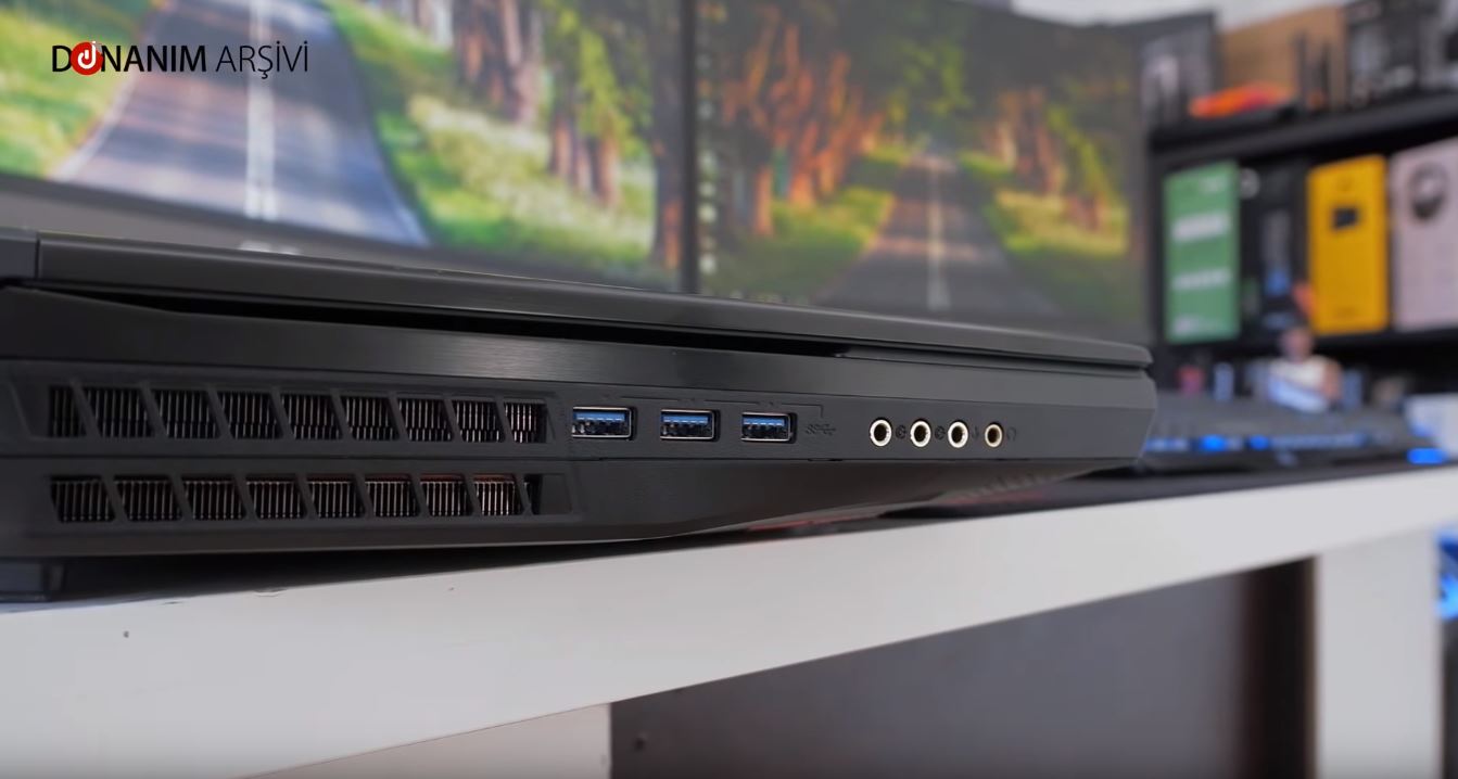Sağ kısımdaki kalın ızgara cihazın sol tarafında da bulunuyor. Hemen yanında 3 adet USB 3.1 Gen 2 Type-A portu ve 4 adet altın kaplama ses giriş-çıkış jaklarını görüyoruz. Cihazın giriş-çıkış birimleri olarak güncel teknolojileri barındırması gerçekten iyi olmuş.