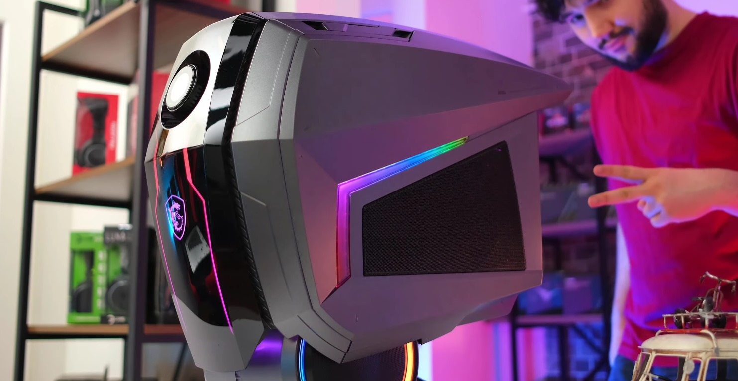MSI MEG Aegis Ti5 oyuncu bilgisayarını öne çıkaran kısmı yukarıdaki görselde gördüğünüz gibi sıra dışı tasarımı oluyor. Futuristik bu tasarım oyuncu temasının vurgulanmasında büyük rol oynamış. Sıradan kasaları düşünecek olursak baştan tasarlandığını söylemek çokta yanlış olmayacaktır. Evet ilk bakışta biraz garip geliyor fakat sonradan bu şık tasarımın etkisine girdiğinizi söyleyebiliriz.