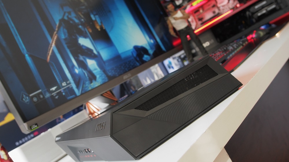 Genel olarak cihaz keskin bir tasarıma sahip ve gönül rahatlığıyla televizyonunuzun ya da monitörünüzün yanına koyabileceğiniz bir şıklığa sahip. MSI Trident 3’ü salonda televizyonun yanına koyduğunuzda hiç sırıtmayacağını emin bir şekilde söyleyebilirim.