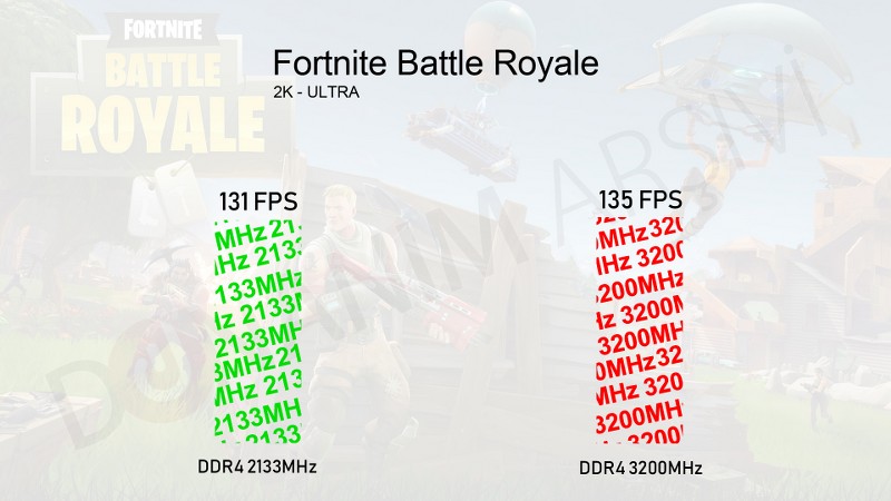 Hem PUBG’den daha başarılı optimizasyonu olması hem de ücretsiz olması nedeniyle günümüzün en çok oynanan battle royale oyunlarından biri olan Fortnite testinde ise fark 4 FPS kadar oluyor. Bu değer kesinlikle kabul edilebilir düzeyde.