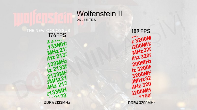 Diğer bir oyun testimizi optimizasyonu daha iyi olan bir oyunla yapıyoruz. Wolfeinstein 2 testinde ortalama olarak 15 FPS gibi bir fark görüyoruz. Aldığımız FPS değerleri çok yüksek olduğu için bu fark göz ardı edilebilir gibi görünüyor.
