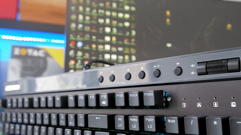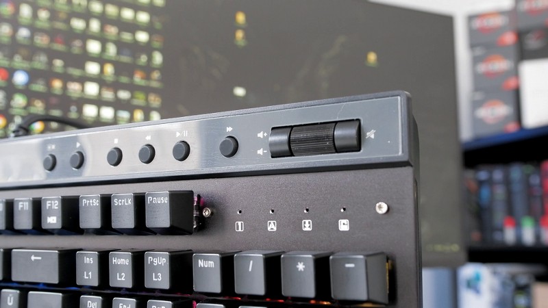 Klavyede bizim aradığımız ve sevdiğimiz özelliklerden biri ise bilgisayarınızın ses seviyesini ayarlamaya yarayan tekerlek. Sağ üst kısıma konumlandırılmış bu tekerleği aşağı yukarı hareket ettirerek anlık olarak ses seviyesini ayarlamak mümkün. Bu kısımın hemen altında ise 4 adet bildirim ışığını görüyoruz. Caps lock gibi tuşların aktif olup olmadığını buradan görmek mümkün, ışık seviyesi ise ortalama düzeyde kullanıcısını rahatsız etmiyor.