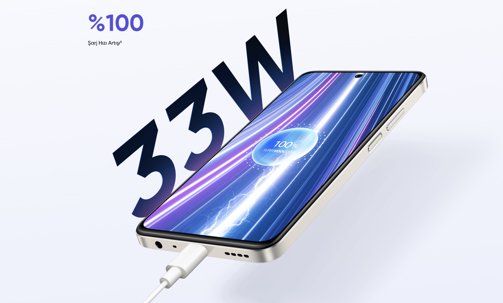 realme C55, kendi segmentindeki en hızlı 33W SUPERVOOC şarjı sunarak pil performansını bir üst seviyeye taşıyor. 63 dakikada %100 şarj edilebilen telefon bu özelliği ile segmentinin en hızlısı.