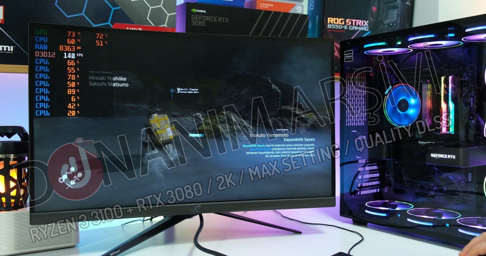 Death Stranding oyununa geldiğimiz zamansa 2K çözünürlükte, en yüksek ayarlarda ve DLSS kalite ayarındayken yaptığımız testlerde RDR 2 oyununa oranla çok daha yüksek darboğaz yüzdeleri gördük. Gördüğünüz gibi %50’lere varan darboğaz gördüğümüz sahneler oldu, bazı sahnelerde de %30 civarlarına düştü bu değer. Yine alt çekirdek kullanımı kaynaklı bir darboğaz söz konusu.
