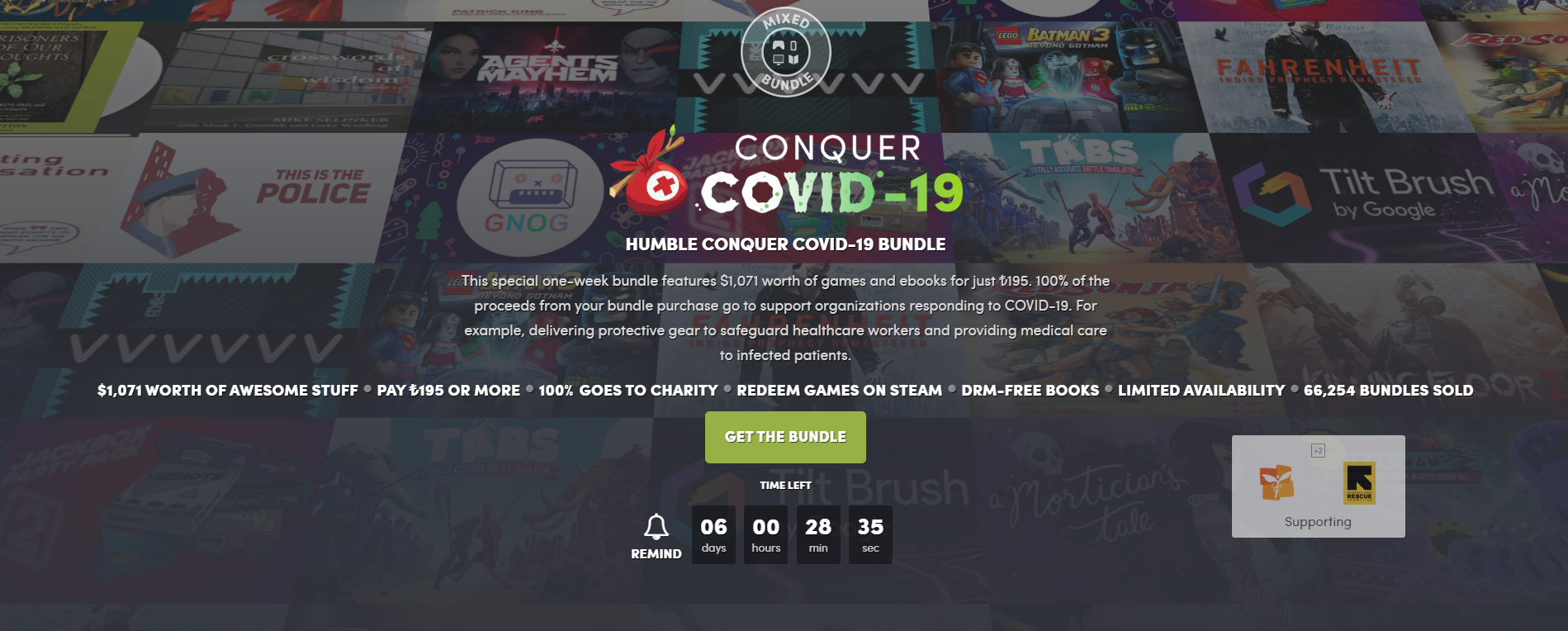 Humble Bundle Koronavirüsüne Karşı Yardım İçin Paket Satıyor Humble Bundle, koronavirüsüne karşı yardım amacıyla oyun ve kitap paketi satmaya başladı. Değeri 7000 Türk Lirasından...